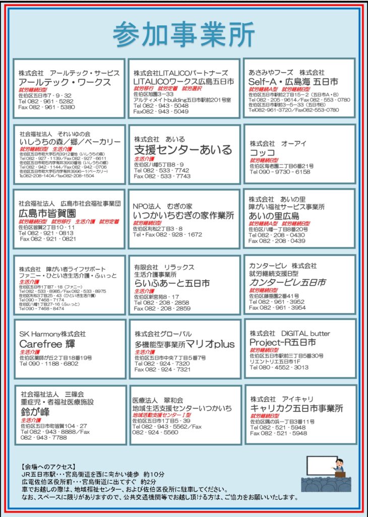 【お知らせ】佐伯区福祉事業所合同説明会が開催されます