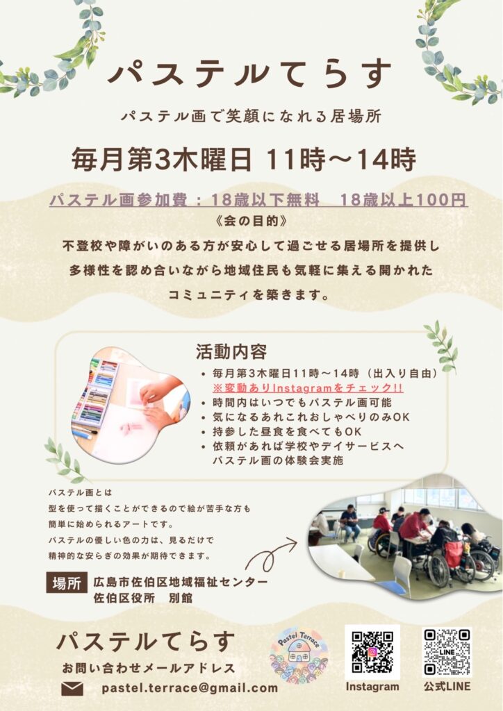 【お知らせ】笑顔になれる居場所「パステルてらす」